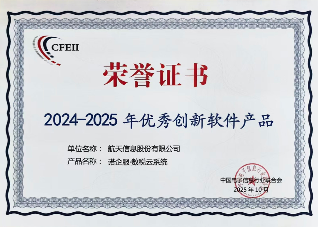 近日,航天信息(600271)股份有限公司自主研发的“爱信诺·诺企服平台”与“诺企服·数税云系统”两款数字财税产品,入选中国电子信息行业联合会组织评选的《2024-2025年度优秀创新软件产品目录》,展现了公司在数字财税领域的产品创新能力和市场实践成果。